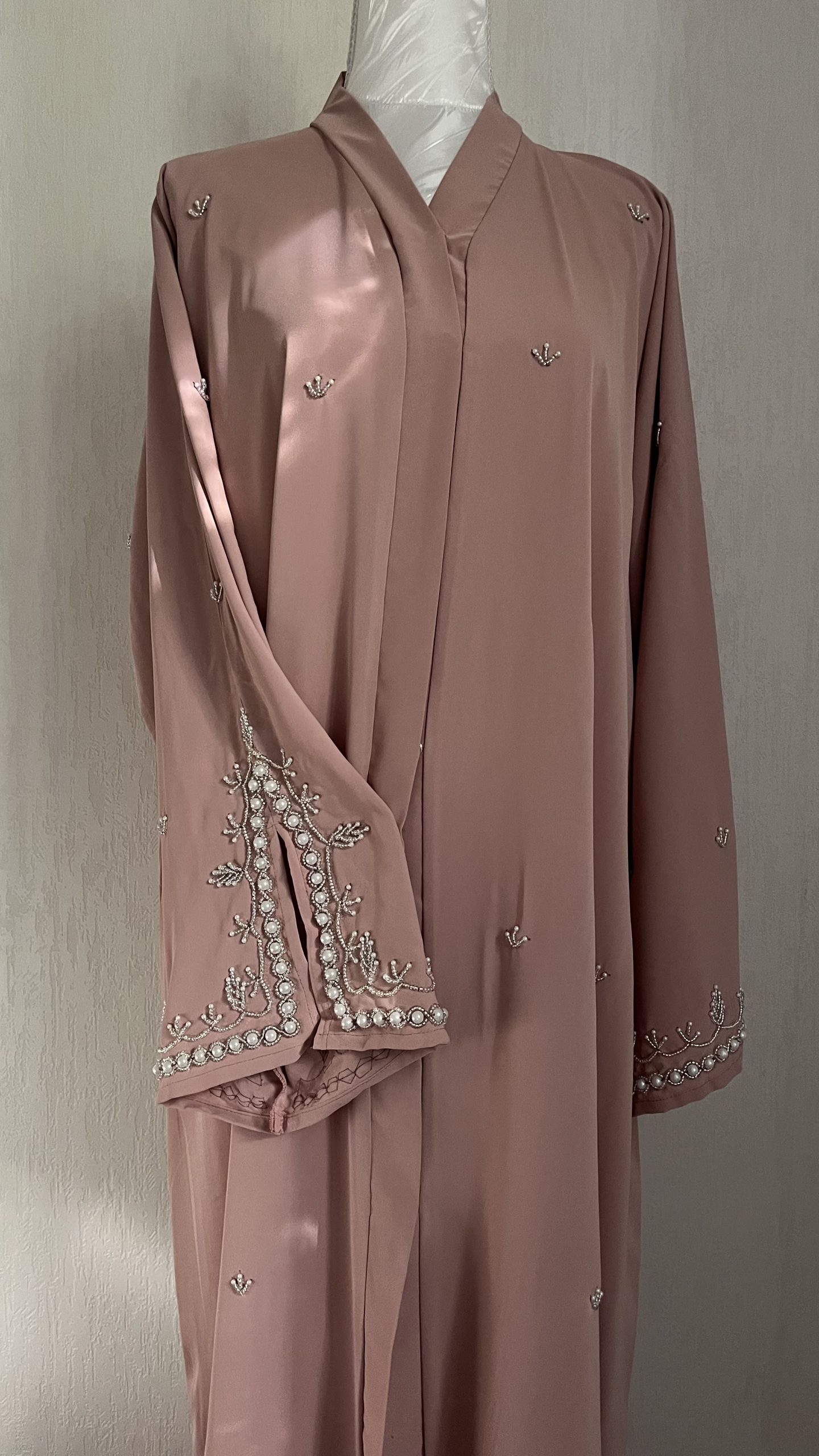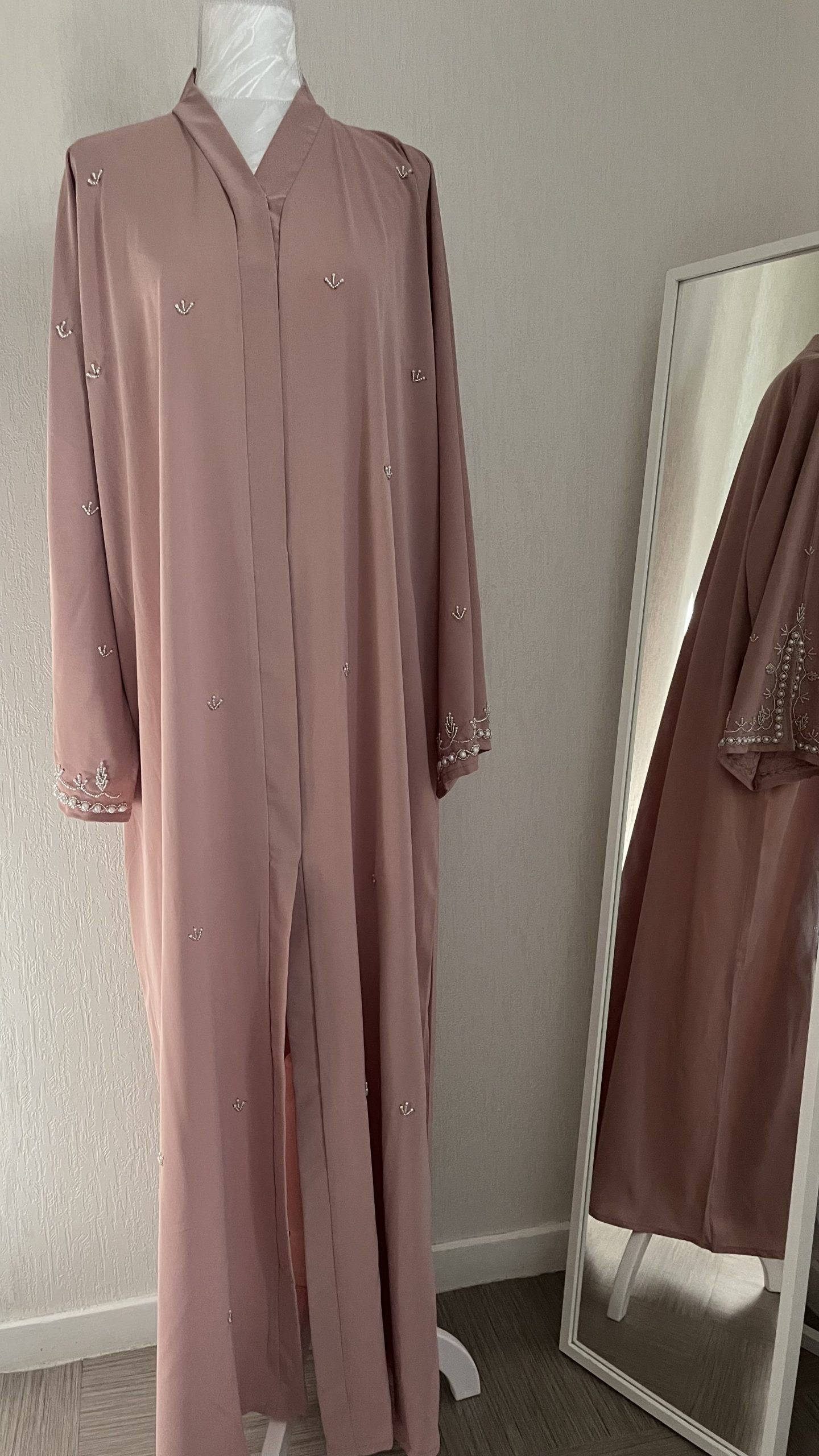 L’abaya parfaite pour tous vos événements, tels que l’Eid, un mariage ou des fiançailles. Elle est conçue dans un tissu fluide et perlée à la main, alliant confort et élégance. Choisissez votre taille en vous référant à notre guide des tailles. Elle est fournie avec un châle assorti et un lien de serrage. Conçue dans nos ateliers aux Émirats Arabes Unis